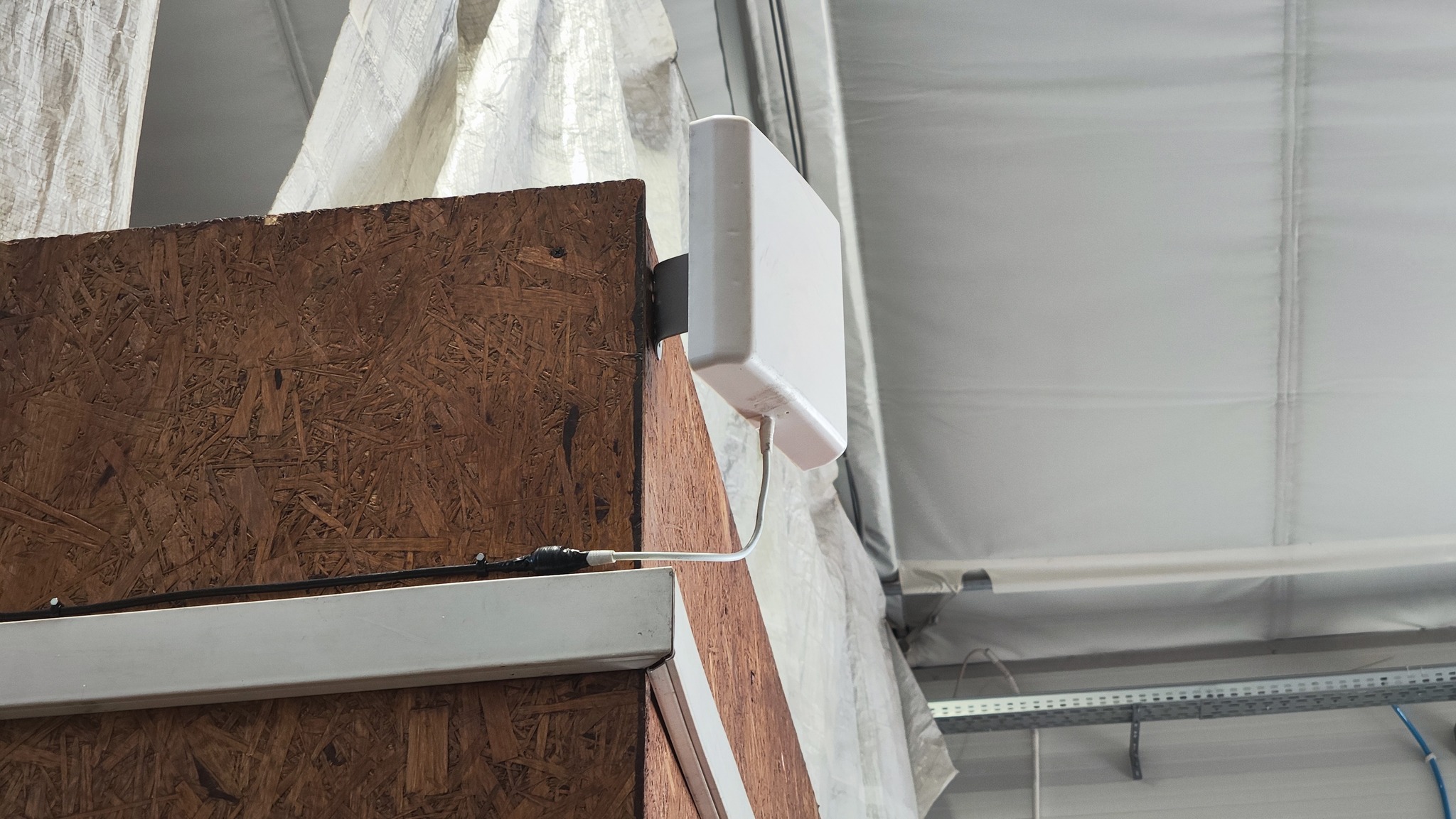 ? Instalacja dwóch wewnętrznych anten panelowych – jedna pokrywająca przestrzeń biurową, druga skierowana na halę magazynową;