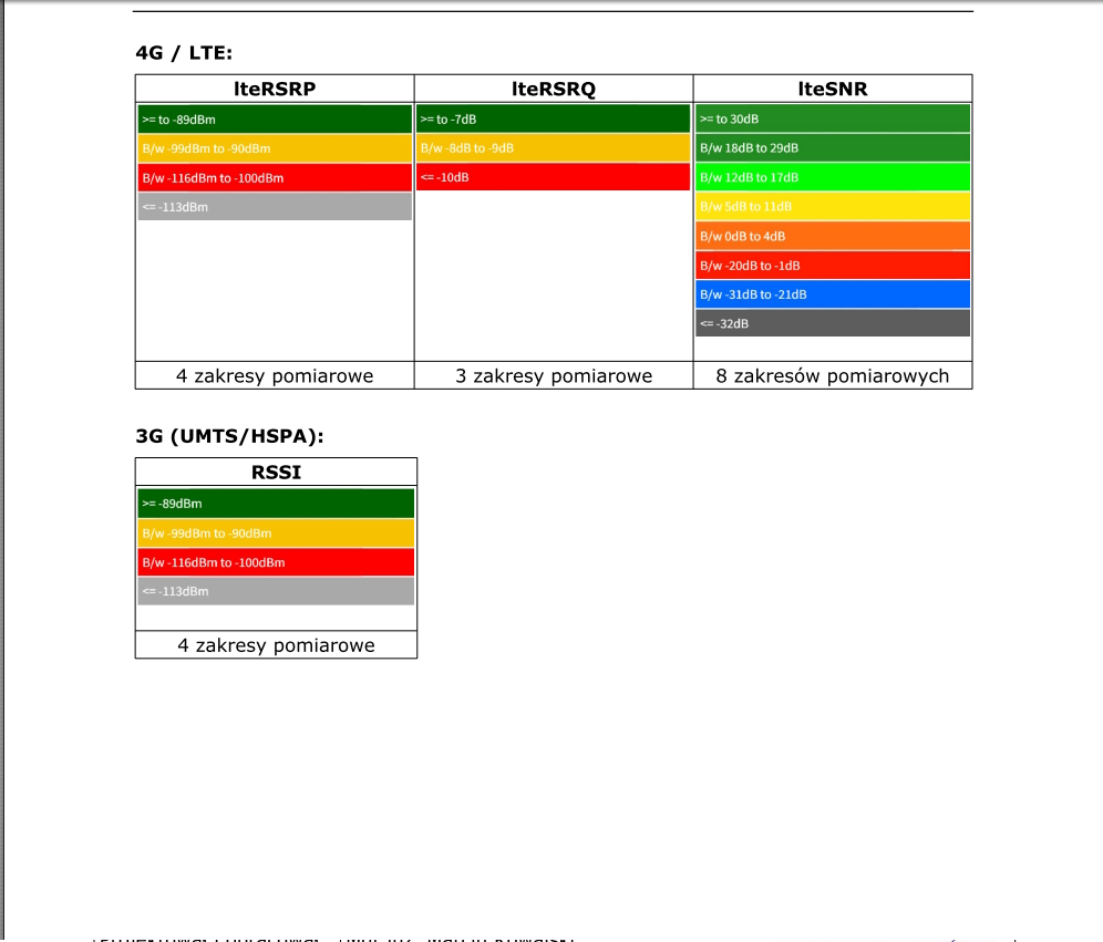 ? Analiza jakości sygnału, poziomów RSSI/RSRP/RSRQ/SINR, a także dostępności pasm 4G dla danych.
