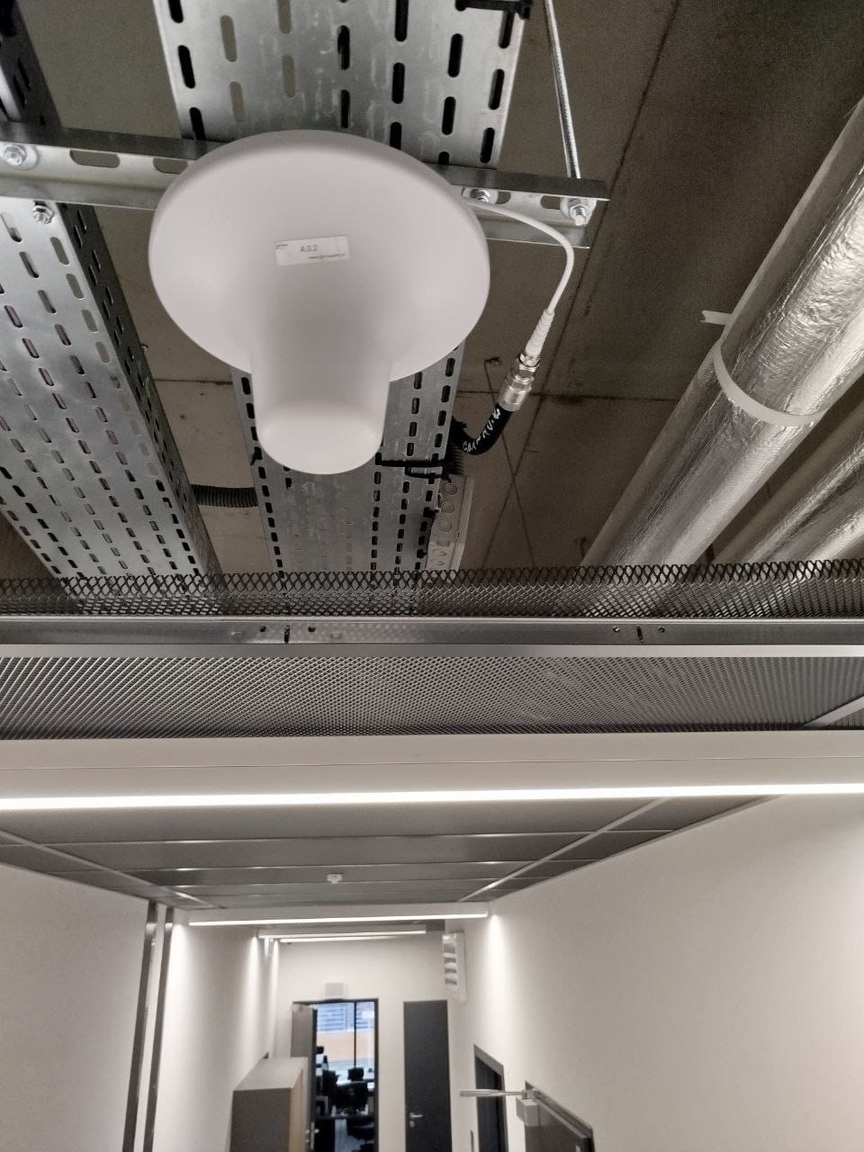 Wykonano instalację systemu DAS obejmującego 12 anten wewnętrznych, pokrywających: