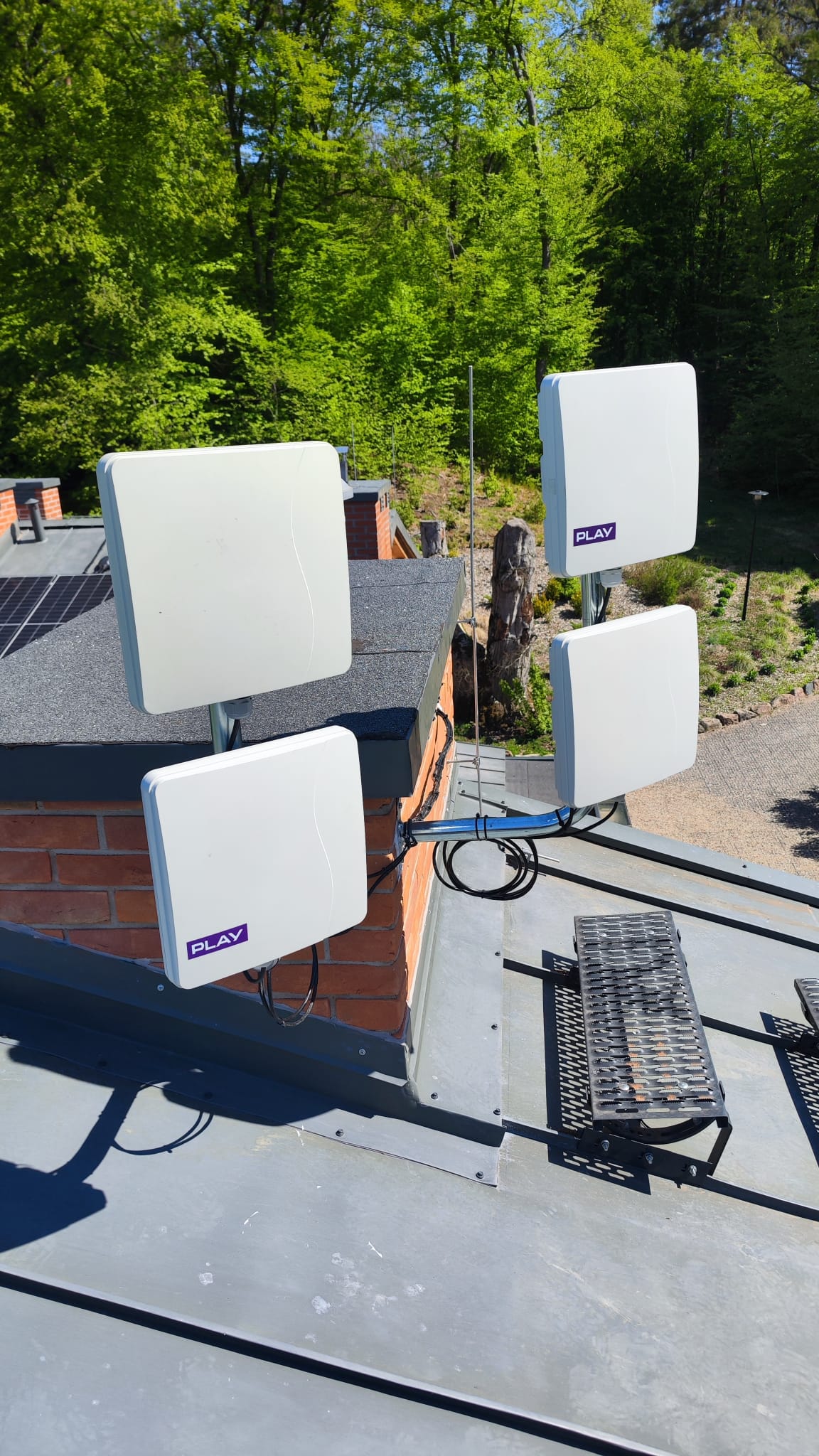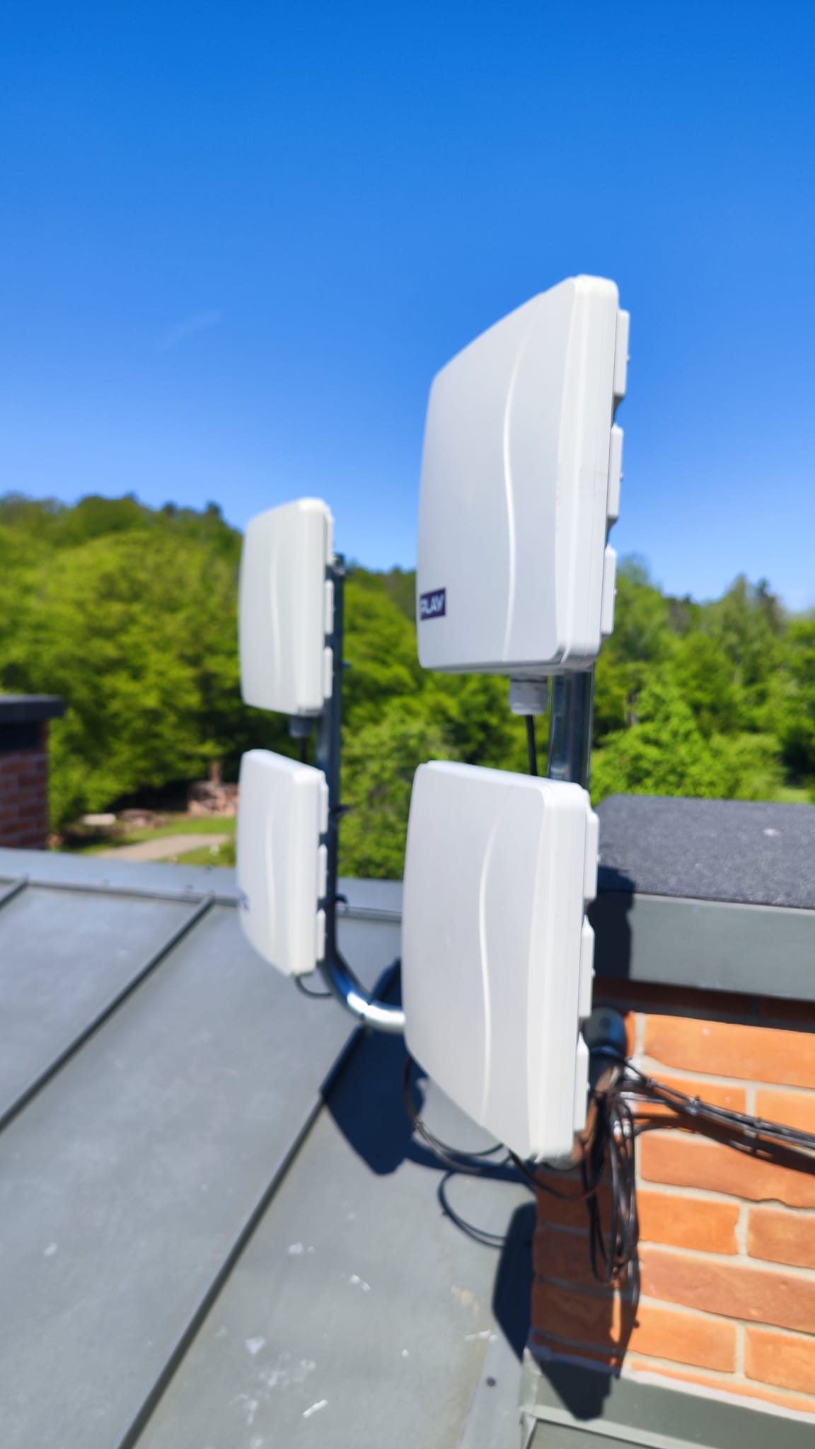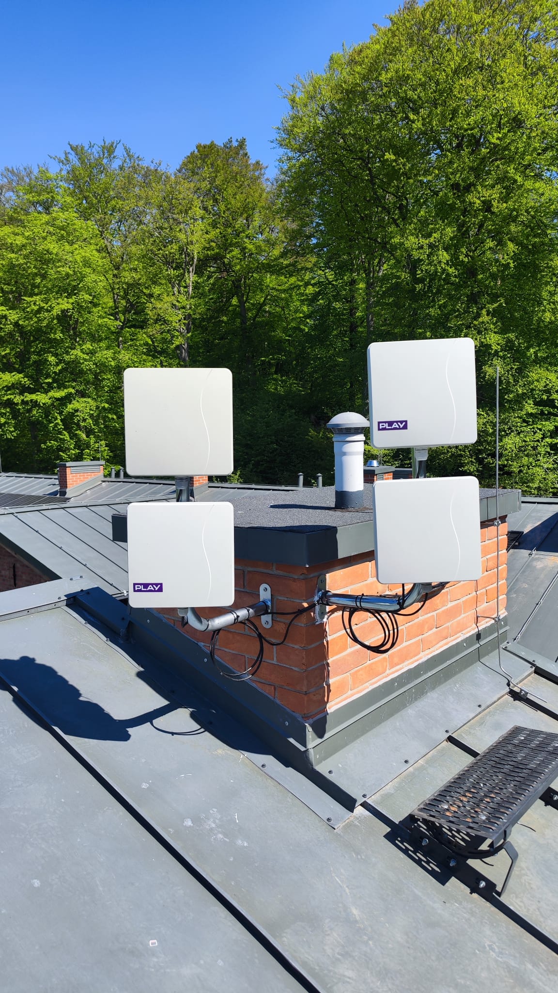 ? Zewnętrzne jednostki (ODU) zamontowano w parach na specjalnych uchwytach kominowych, co zapewniło maksymalną siłę sygnału.